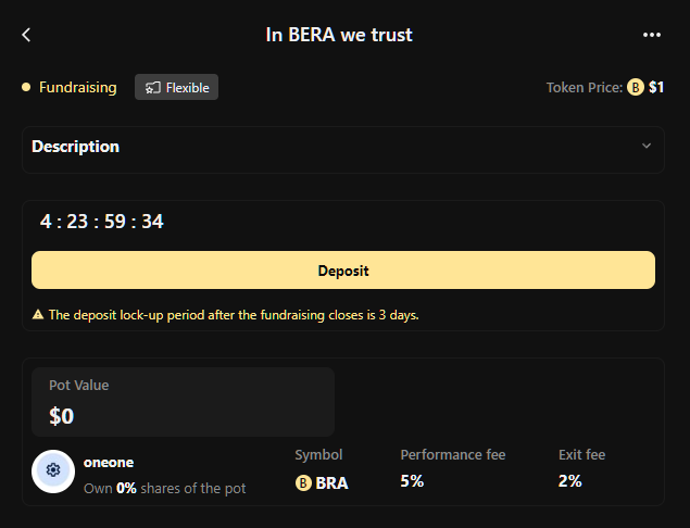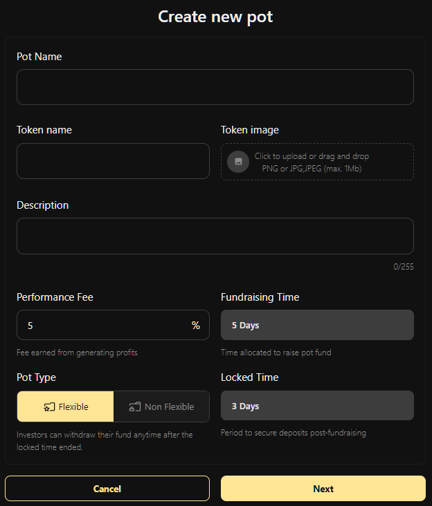 Set the Performance Fee (fee you would earn if your Pot make profit).