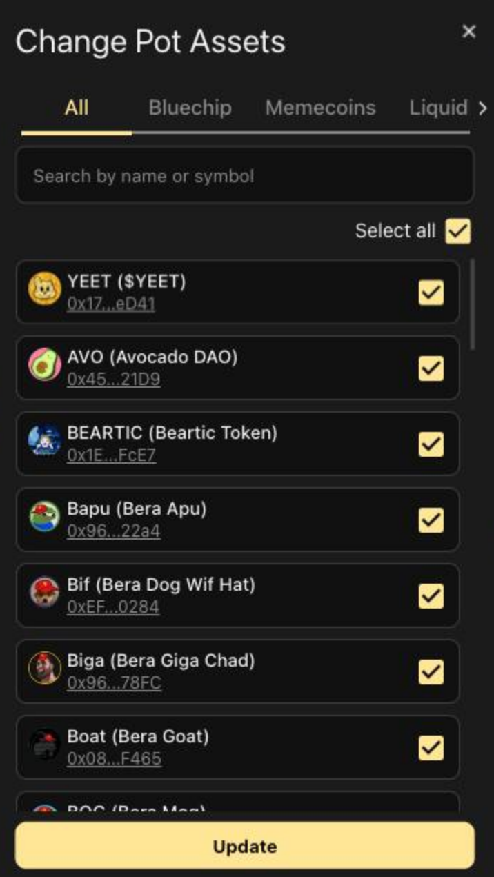 Selecting Pot Assets is essential before performing any actions with your Pot.