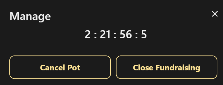 Use the Manage section to either Cancel Pot or Close Fundraising before the timer runs out.