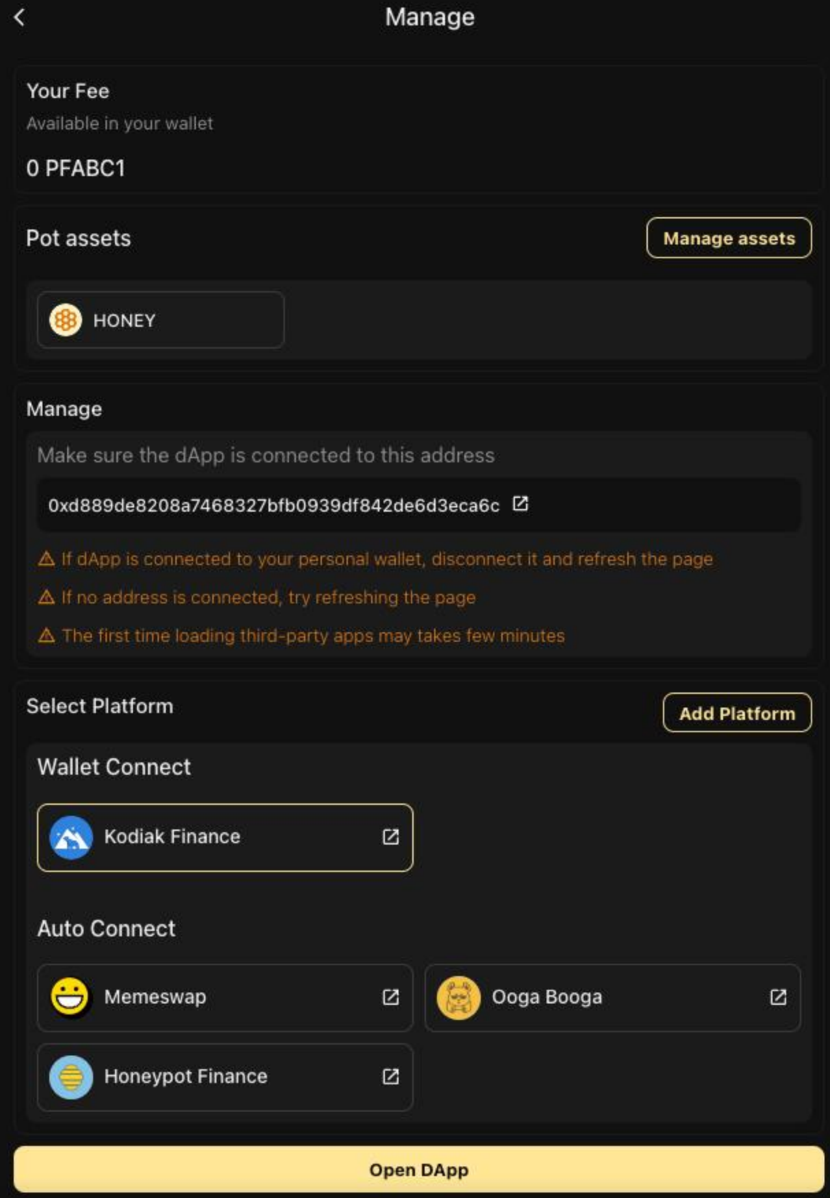 Auto Connect: If the dApp supports Safe Wallet, your Pot will connect automatically.